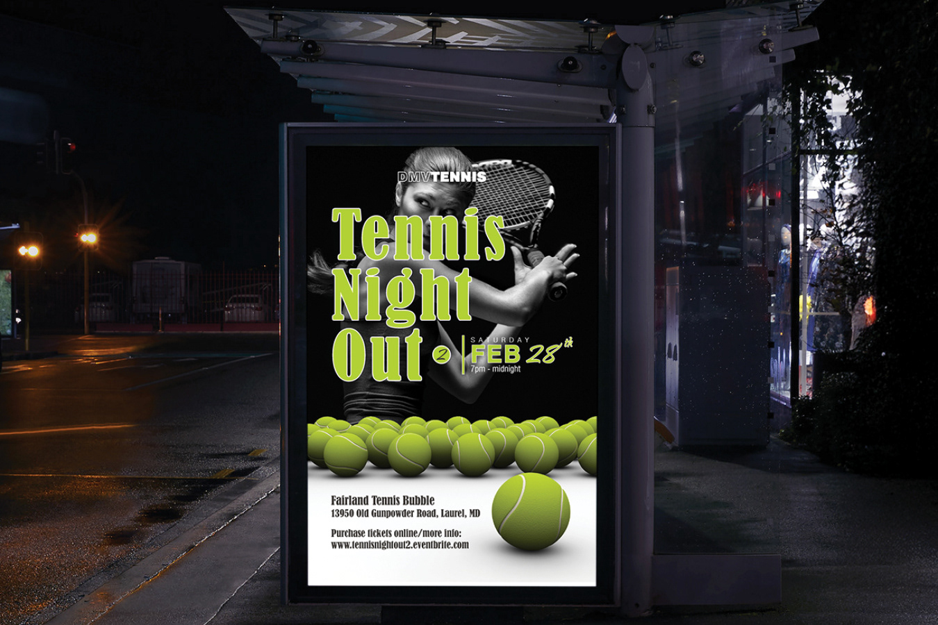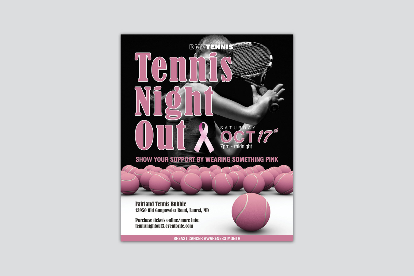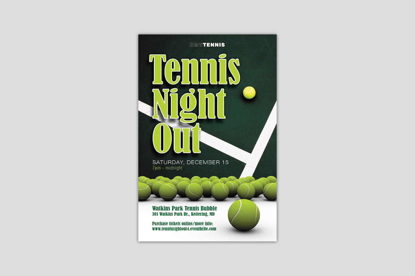 DESCRIPTION: Partnered with DMV Tennis to boost participation in the Washington, D.C. area. Designed impactful event collateral and a compelling slide deck to effectively promote local tennis programs.